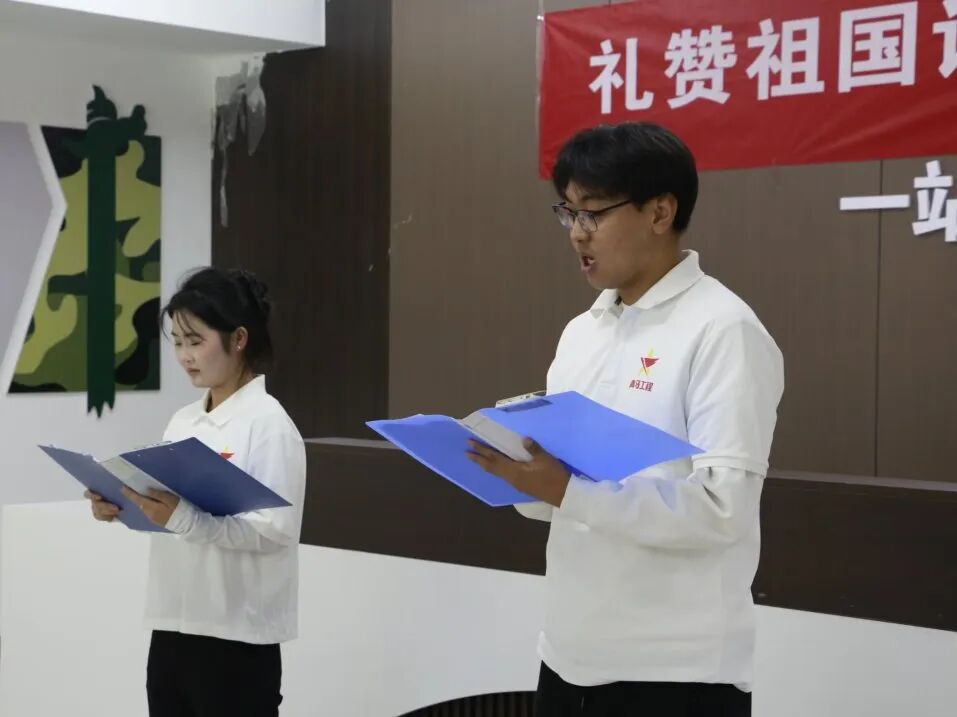 活动以“国家荣光——追忆民族革命征程”“三晋风骨——讲述山西红色故事”“临汾记忆——传承本土英雄精神”为核心篇章,层层递进唤醒红色记忆。“国家荣光”篇章中,青马班学员身着整齐服装,以饱满情感诵读《祖国啊,我亲爱的祖国》,从“破旧的老水车”到“绯红的黎明”,用细腻声音追溯祖国过往、礼赞时代新貌,倾诉对祖国的眷恋,引发全场共鸣;随后朗诵毛泽东同志《沁园春·雪》,以壮阔意境抒革命豪情、明复兴之志,呼应我校育人家国情怀的理念;革命先驱李大钊事迹讲述紧随其后,重现其“铁肩担道义”初心,传递英雄精神。“三晋风骨”篇章里,学员诵读《太行山上》节选,结合我校“扎根三晋、服务地方”办学理念,简要回顾平型关大捷,让三晋红色印记深入人心。“临汾记忆”篇章聚焦本土英雄,重点讲述临汾籍先烈张振山事迹:作为临汾第一名共青团员、中共临汾党支部第一任书记,他以27岁生命点燃晋南革命火种,其英勇事迹让在场师生体会到这片土地的赤诚与担当;最后,20名青马班学员齐诵《我爱你,临汾》,从鼓楼晨钟暮鼓到汾河潺潺流水,从尧都千年文脉到今日蓬勃发展,用深情语句展现对家乡的热爱,彰显我校学子扎根临汾、建设地方的决心。