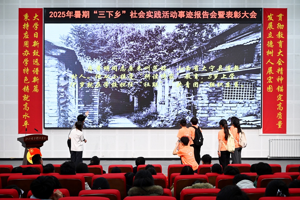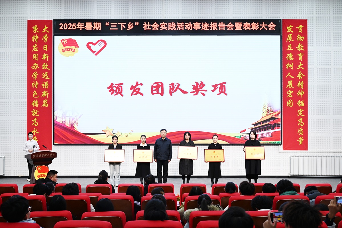 11月26日晚,2025年大学生暑期“三下乡”社会实践活动事迹报告会暨表彰大会在化学楼报告厅举行。校党委书记扈新起,党委委员、副校长贾建峰出席大会。党政办公室(发展规划部)负责人许强、校团委负责人赵佳婧、各团队指导教师与300余名师生齐聚一堂,共同回顾实践征程,见证青春担当,共话振兴使命。