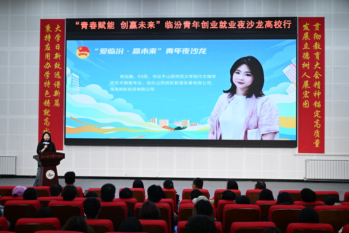 活动紧扣“青春赋能·创赢未来”核心主题,环节紧凑、内容务实。创业嘉宾结合自身奋斗经历,分享了干货满满的创业经验:自媒体创业者崔轶岩以50元启动资金投身短视频创作,聚焦本土生活场景深耕内容,逐步积累超200万全网粉丝,实现了从个人创作到团队化运营的跨越式发展;毕业于山西师范大学现代文理学院国画专业的“00后”创业者杨怡鑫,凭借专业美学功底深耕古建筑数字化复原领域,研发古建“AI”修复系统,推动古建资源数字化转化与文旅产业深度融合;助农电商从业者闫雯怀揣乡土情怀返乡创业,通过搭建电商平台、开展直播助农等创新模式,助力蒲县核桃等特色农产品拓宽销路,带动乡土产业增值与农户增收。在论坛式访谈环节,嘉宾们紧扣临汾高质量发展布局,围绕“青年创业如何对接本土资源”“跨界创业的能力储备”“创业风险规避技巧”等学子关切话题,与现场学生互动交流、答疑解惑,为有志创业的青年提供了针对性指导。