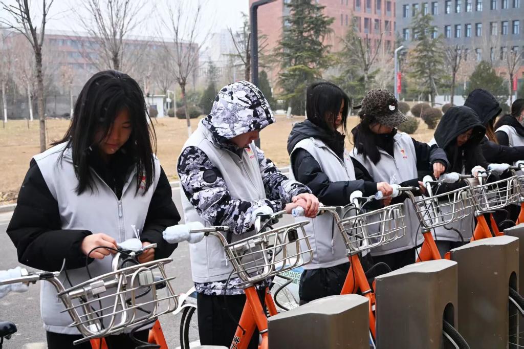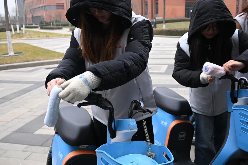 为扎实落实劳动教育要求,弘扬“奉献、友爱、互助、进步”的志愿精神,进一步提升校园自行车、共享电动车骑行的保暖性与舒适度,12月下旬,我校第一期“青年马克思主义者培养工程”大学生骨干培训班开展“劳润青春,服务暖行”实践活动,校青马指导老师苏子桐、陈佳及全体青马班学员共同参与。