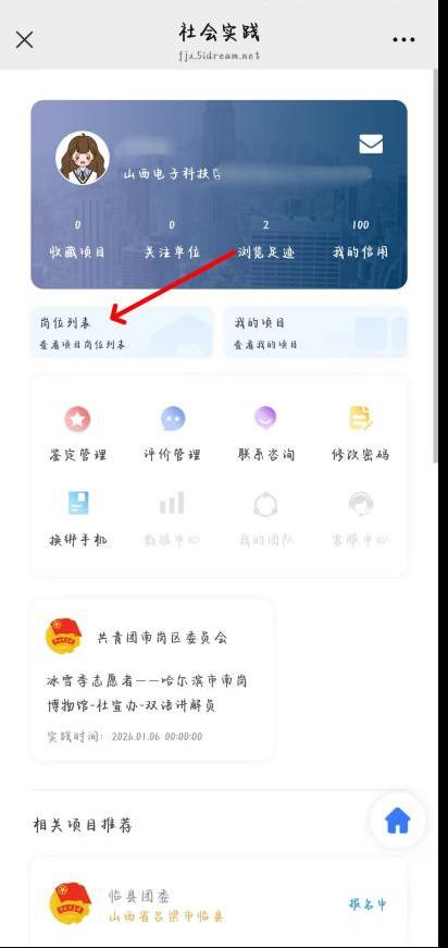 按照团中央“青春为中国式挺膺担当”2026年寒假山西电子科技学院大学生“返家乡”社会实践总体要求,依托团中央创青春公众号的“返家乡社会实践岗位对接系统”,结合我省实际,充分发挥市县团委、系统团(工)委、高校团委职能作用,引导大学生广泛开展返乡实践,更好地了解国情、感知社会服务群众,紧跟党走与实践、与人民群众相结合的成长道路。