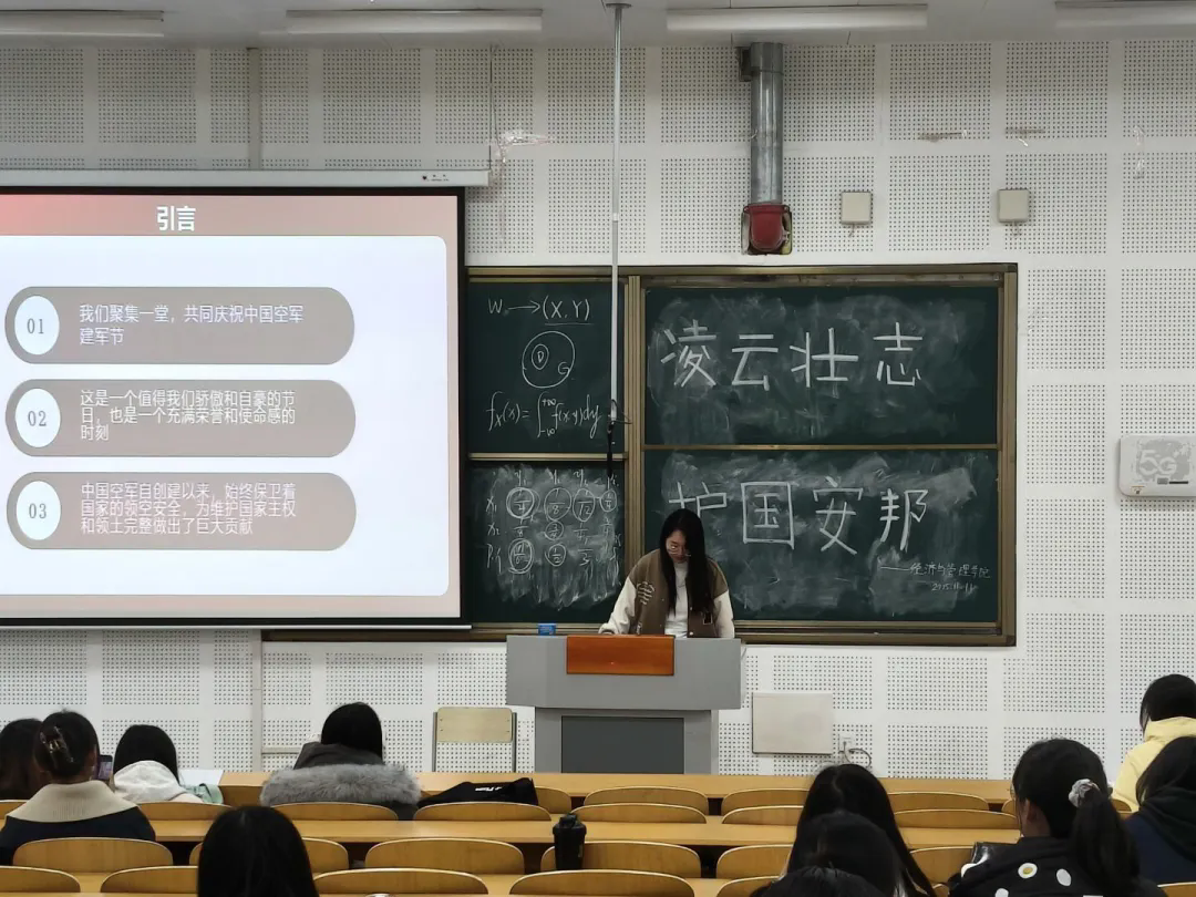 为筑牢同学们的国防思想根基,经济与管理学院团委于11月11日在南楼424教室开展“凌云壮志,护国安邦”主题团日活动。活动中同学们专注聆听、深入思考,深刻领会国防建设的战略意义。此次活动有效引导大家树立国防观念,进一步激励同学们为国防事业的发展注入青春动能。