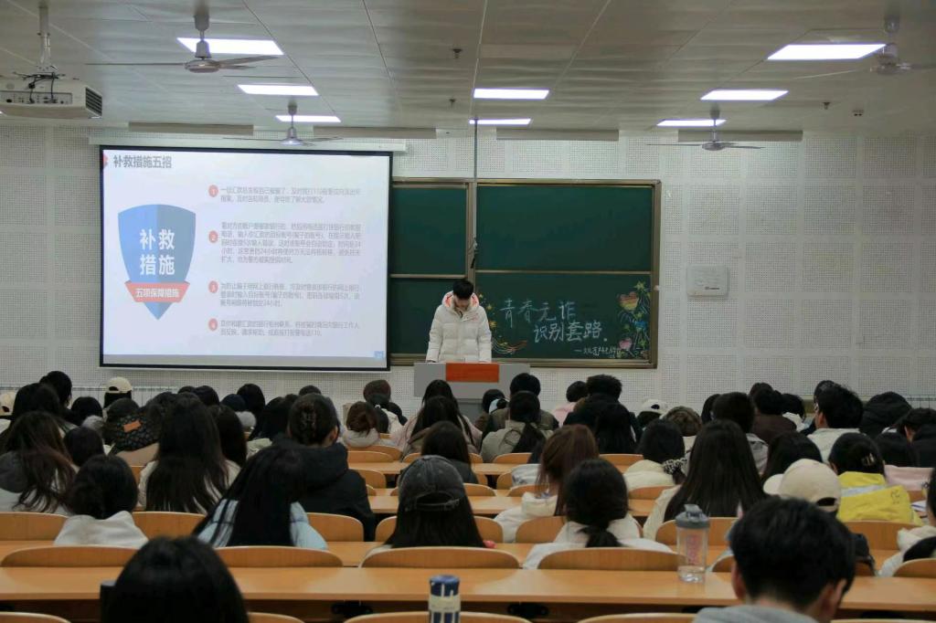 为了提升学生防范电信网络诈骗的意识与能力,文化遗传与艺术学院于2025年11月18日在南教学楼324教室组织开展“识别套路,青春无诈”主题教育讲座。此次反诈讲座让同学们真切认识到电信诈骗的隐蔽性与危害性,手把手掌握了“三码六不”等实用防骗技巧,让“人人识诈、人人防诈”的安全防线在校园里越筑越牢。