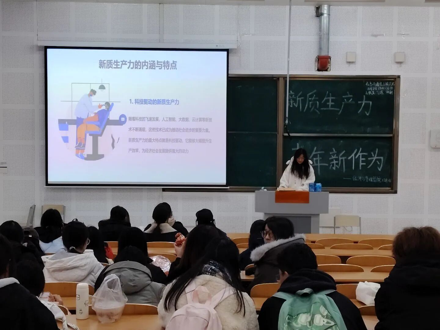 为凝聚青年共识,激励担当作为,经济与管理学院团委于12月2日在教学南楼424教室开展“新质生产力,青年新作为”主题团日活动。活动中同学们认真听讲,深入理解新质生产力内涵,探讨青年责任与创新使命。此次活动凝聚奋进力量,引领同学们在时代发展中奋发前行。