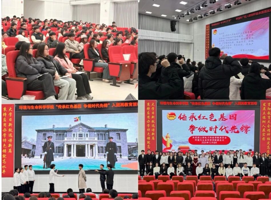 2025年12月9日下午2时至4时,环境与生命科学学院团委在化学报告厅开展入团再教育活动。参与人员们齐唱团歌、庄严宣誓,用誓言彰显初心。汇演现场上,新疆舞展现民族风情,情景剧《破晓》回溯五四青年的爱国壮举,《闪耀》《我爱你中国》等歌曲更点燃了青春热情。此次活动以红色基因浸润青年心灵,引导团员以奋斗之姿践行使命。
