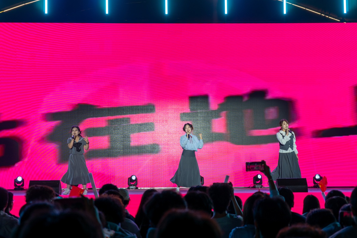 作为晚会核心篇章,本篇章紧扣家国情怀主题,凝聚师生同心筑梦的精神力量。校团委学生社团联合会(藏乐阁协会)学生演唱的《铭记》,旋律深情动人,歌词饱含对家国的热爱,唤起师生对历史的铭记、对祖国的赤诚;校团委学生社团联合会(青语普通话与艺术协会)的情景朗诵《三代守护 一脉相承》,通过讲述三代人坚守理想、传承责任的故事,诠释“薪火相传”的精神内涵,传递担当使命的价值追求;文化遗产与艺术学院、校团委学生社团联合会(W-Lin舞之林协会)联合呈现的歌伴舞《共筑中国梦》,以豪迈歌声、大气舞姿将晚会氛围推向高潮,生动表达师生对祖国的美好祝福,以及与祖国同呼吸、共命运,携手共筑中国梦的坚定信念。