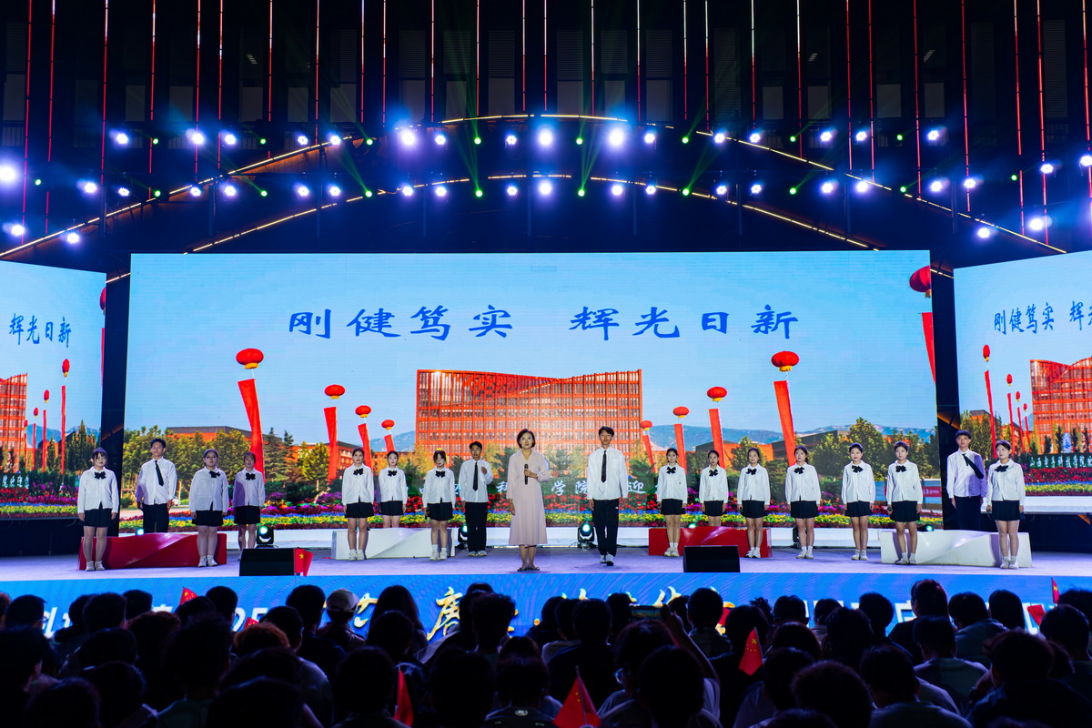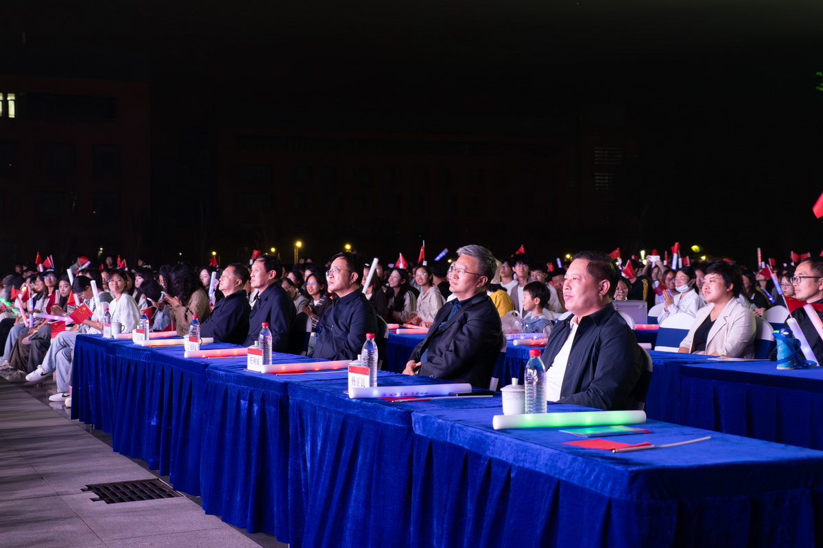 正值国庆、中秋双节交汇之际,为热烈庆祝中华人民共和国成立76周年,迎接2025级新同学融入山电大家庭,9月29日晚,我校“‘芯’火赓续·筑梦华章”贺国庆·庆中秋·迎新生文艺晚会在学校图书馆东广场举行。校领导扈新起、任利成、吉守斌、杨正民、孙桓五出席晚会,各职能部门、各学院负责同志,新生辅导员及2025级全体新生共3500余人现场观看演出,共同畅享兼具思想性、艺术性与观赏性的文化盛宴。